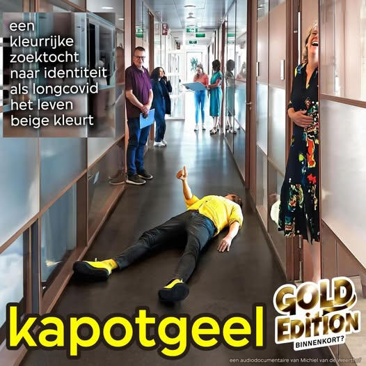 kapotgeel. Longcovid zoals je het nog niet hoorde.🟡 kapotgeel is een prikkelende en humoristische audio-documentaire die de grilligheid van longcovid voelbaar maakt. Geen droge opsomming van klachten, maar een gelaagd, muzikaal en absurd portret van een veranderde werkelijkheid.⚠️ kapotgeel tracht je in audio te laten beleven hoe het cognitief is om longcovid te hebben. Dus verre van prikkelarm. Net als het echte leven.Daarnaast gebruikt de documentaire ‘de werkende mens’ als metafoor, met het DISC-model als kapstok: vier kleuren, vier manieren waarop mensen – en dus ook longcovidpatiënten – met verandering en identiteitsverlies omgaan.Verschenen bij VPRO DOCS.