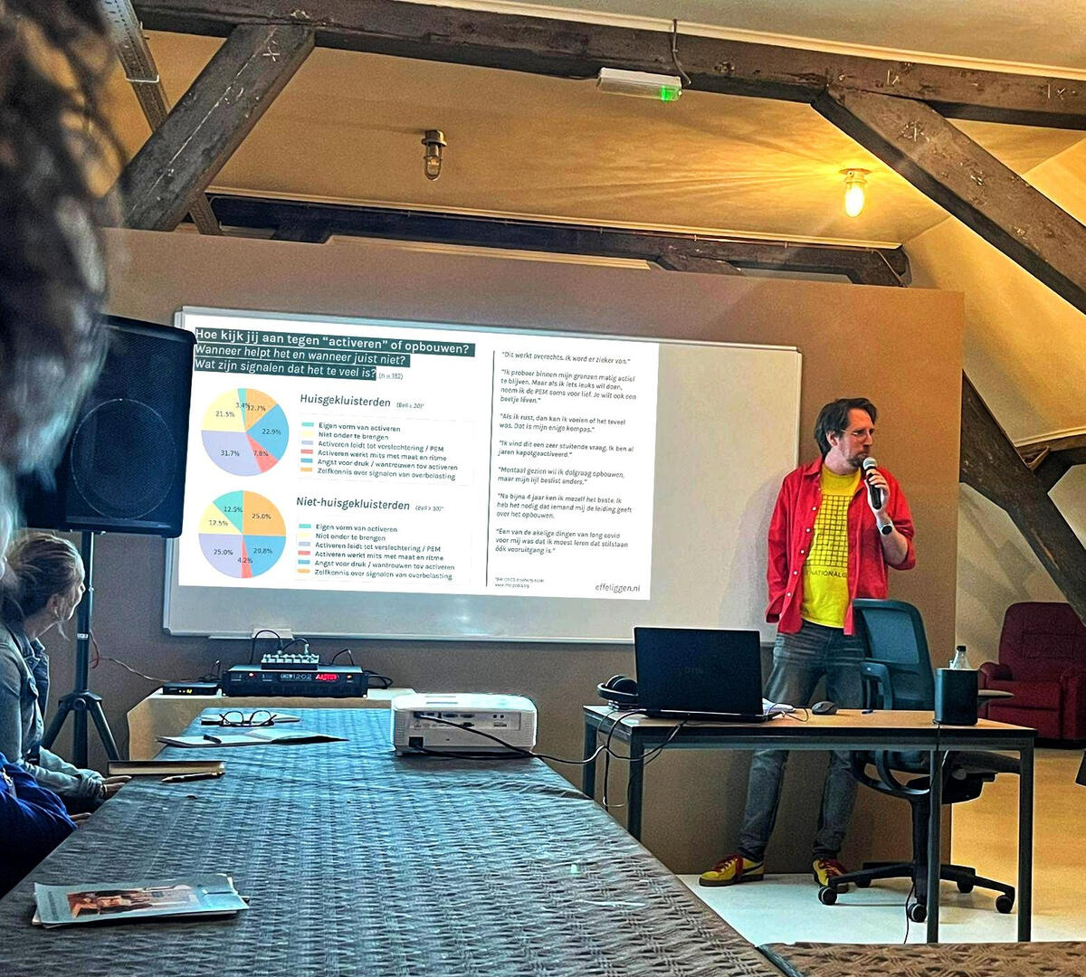 Hallo, ik ben Michiel.Ik ben geen BN’er, medicus of onderzoeksjournalist. En al helemaal geen lobbyist of politicus.Wel een podcastmaker, eindredacteur, kunstenaar en ervaringsdeskundige. En vooral: verhalenverteller, gespreksopener en prikkelende dwarsdenker. Met Effeliggen en Kapotgeel help ik mensen longcovid te begrijpen—juist als ze het zelf niet hebben.
