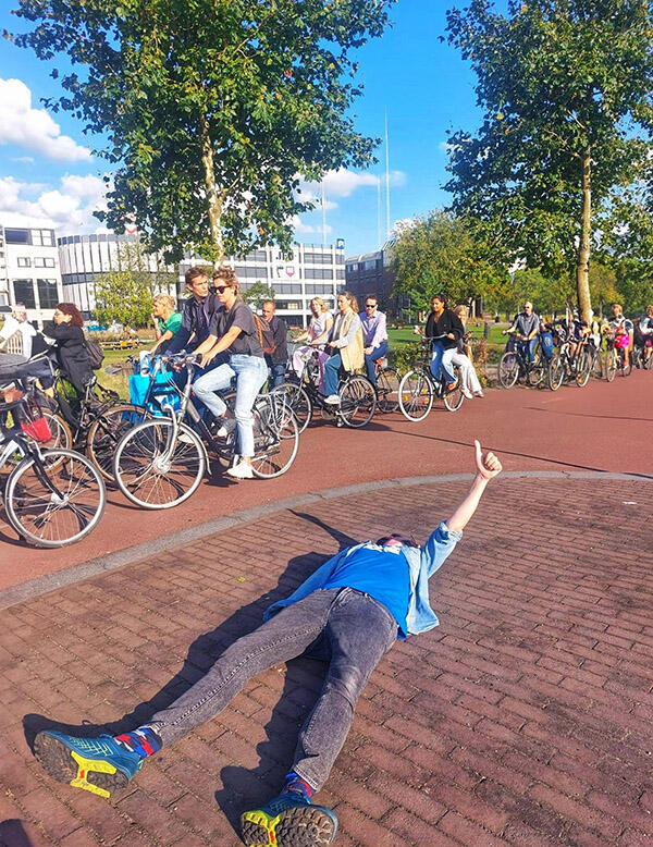 🟡 Daarom ben ik begonnen met een fotoreeks waarin ik op allerlei onverwachte plekken een tukkie doe.Een poging om de absurditeit én de impact van longcovid te laten zien. Om een fris perspectief te bieden dat zowel patiënten als buitenstaanders aanspreekt.Want longcovid gaat niet alleen over "iets met moe zijn." Het leert ons iets fundamenteels over wat het betekent om mens te zijn.
